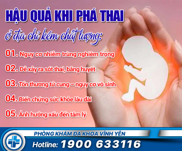 Kết luận: Phá thai tại địa chỉ kém chất lượng tiềm ẩn nhiều hậu quả nguy hiểm cho cả thể chất và tinh thần. Vì vậy, nếu buộc phải đình chỉ thai, cần lựa chọn cơ sở y tế uy tín, được cấp phép, có bác sĩ chuyên môn để đảm bảo an toàn.