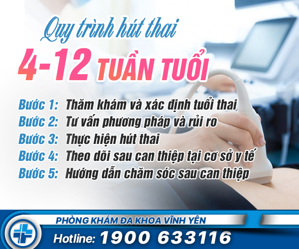 Hút thai từ 4 đến 12 tuần tuổi là phương pháp chấm dứt thai kỳ ở giai đoạn sớm. Sử dụng ống hút chân không y tế để lấy thai ra khỏi tử cung. Ở giai đoạn này: